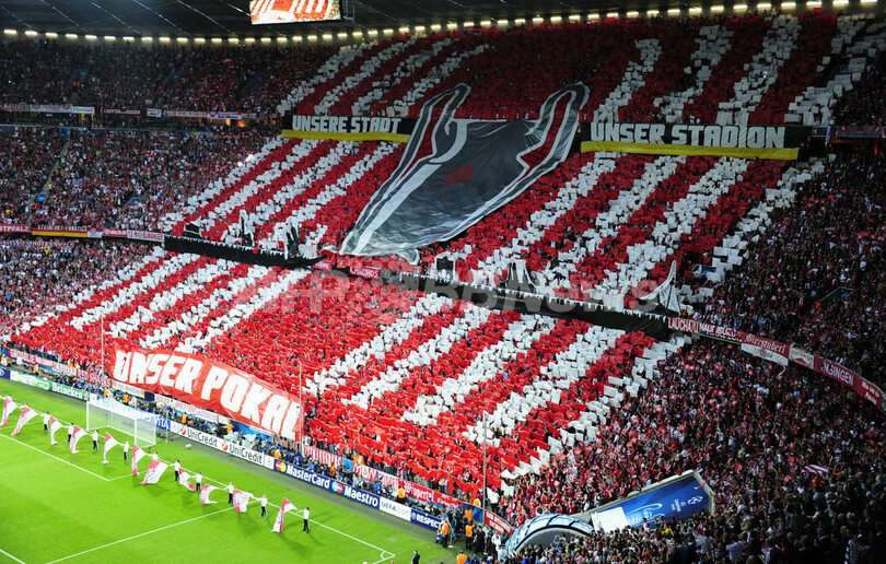 試合開始前にバイエルン・ミュンヘンのサポーターが作ったコレオグラフィー(2012年5月19日撮影)。(c)AFP/JOHN MACDOUGALL