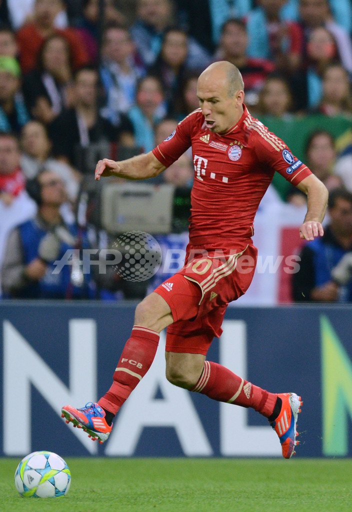 ドリブルするバイエルン・ミュンヘンのアリエン・ロッベン(Arjen Robben、2012年5月19日撮影)。(c)AFP/ADRIAN DENNIS