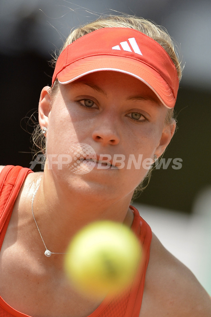 リターンを狙うアンジェリーク・クルベール(2012年5月19日撮影)。(c)AFP/FILIPPO MONTEFORTE