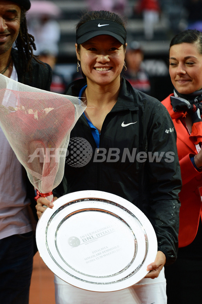 敗れた李娜は、イタリア杯決勝のためにヘリコプターが上空を飛び交い、花火の爆発音やサポーターによるチャントがテニスの会場内まで響いてたことに触れ、「ばかげた試合だったわ。雨の中でサッカーしているみたいだった。中断でコートを去った後もずっと集中していなければならなかったし、どちらにとっても疲れる試合だった」と話した。(c)AFP/Scott Williams