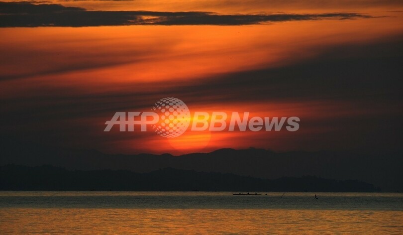 写真は、フィリピンのマニラ(Manila)首都圏ケソン市(Quezon City)のグマカ(Gumaca)で観測された朝日の部分日食(2012年5月21日撮影)。(c)AFP/TED ALJIBE