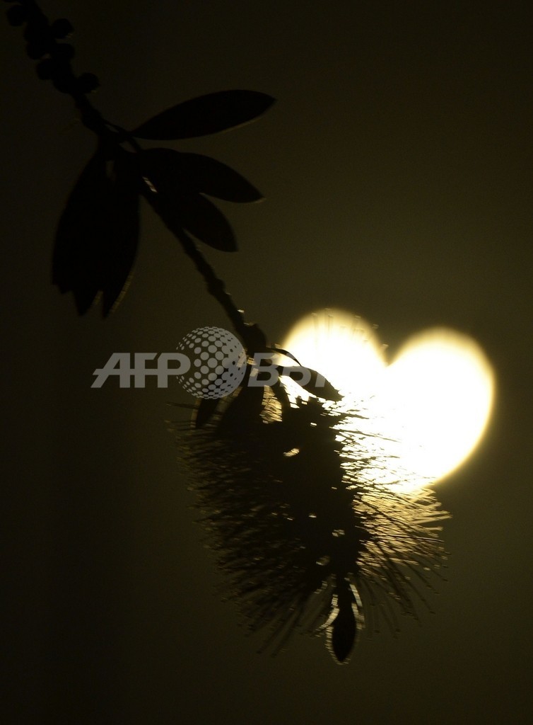 写真は、米カリフォルニア(California)州ロサンゼルス(Los Angeles)で観測されたハート形に見える部分日食(2012年5月20日撮影)。(c)AFP/JOE KLAMAR