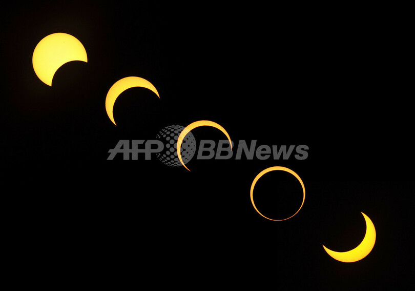 【5月21日 AFP】環太平洋の広域で日本時間21日、月が太陽と地球の間を横切り、月の影によって太陽の円周の光が指輪のように見える金環日食が観測された。日本で今回ほど多くの場所で金環日食が観測できたのは、実に932年ぶりだという。(c)AFP