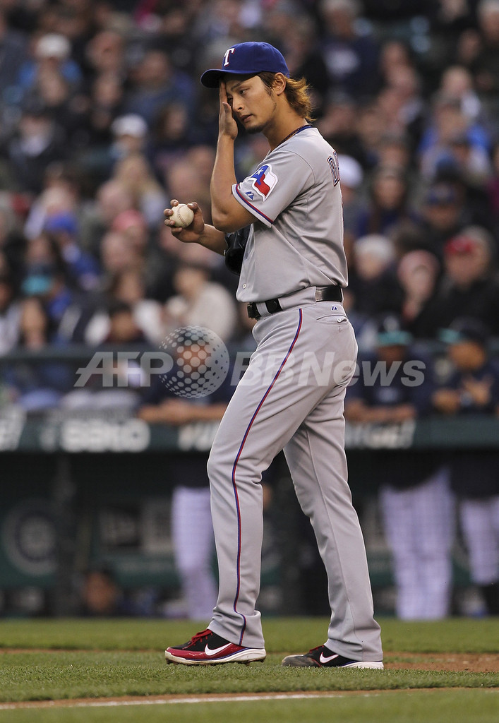 シアトル・マリナーズ戦に先発登板し、4回4安打5失点6与四球で2敗目を喫したテキサス・レンジャーズのダルビッシュ有(Yu Darvish、2012年5月21日撮影)。(c)AFP/Getty Images/Otto Greule Jr