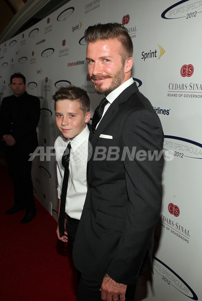 会場には、特別賞を受賞したサッカー選手のデビッド・ベッカム(David Beckham)が、妻のヴィクトリア・ベッカム(Victoria Beckham)、息子のクルズ(Cruz)君、ロメオ(Romeo)君、ブルックリン(Brooklyn)君と共に姿を現した。