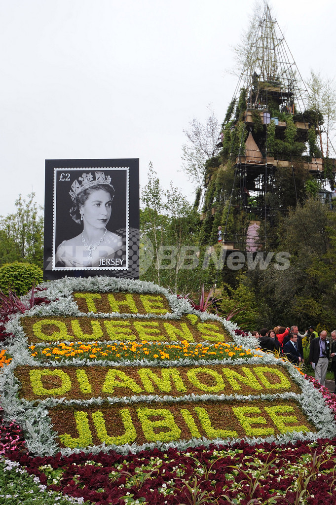写真は、エリザベス女王(Queen Elizabeth II)の即位60周年を記念した展示(2012年5月21日撮影)。(c)AFP/CARL COURT