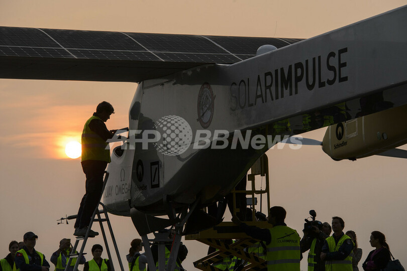 この大陸間飛行は、2014年に計画されている同機の世界一周飛行に向けた準備の一環として行われる。同機は2010年7月、有人ソーラー飛行機として世界で初めて24時間以上の連続飛行を行うという記録を打ち立てている。(c)AFP