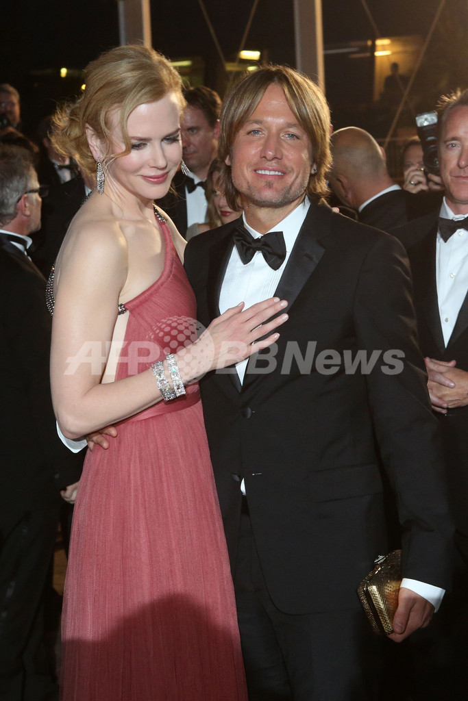 写真は、上映会場を後にするキッドマンと夫のキース・アーバン(Keith Urban、2012年5月24日撮影)。(c)AFP/VALERY HACHE