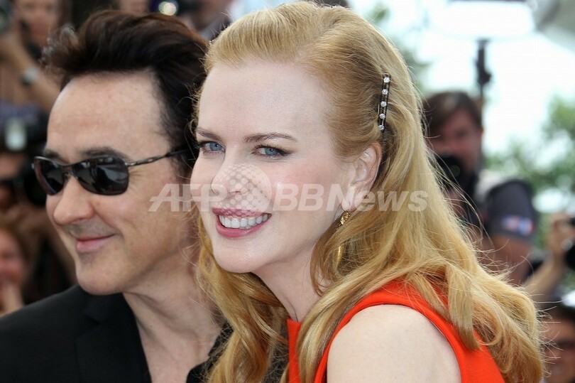 写真は、フォトセッションに登場したキッドマンとキューザック(2012年5月24日撮影)。(c)AFP/VALERY HACHE