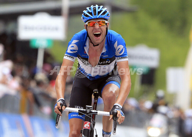 ステージ2位に入ったガーミン・バラクーダ(Garmin Barracuda)のライダー・ヘシェダル(Ryder Hesjedal、2012年5月25日撮影)。(c)AFP/LUK BENIES