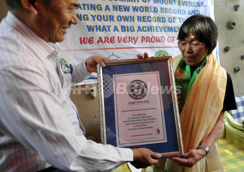 【5月26日 AFP】登山家の渡辺玉枝(Tamae Watanabe)さん(73)が19日、世界最高峰エベレスト(Mount Everest、8848メートル)の登頂に成功し、女性最高齢のギネス記録(Guinness World Record)を更新した。