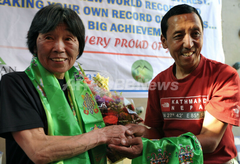 渡辺さんは10年前の2002年5月16日のエベレスト登頂成功で女性最高齢の世界記録を達成しており、今回の登頂で自らの立てた記録を更新した。(c)AFP