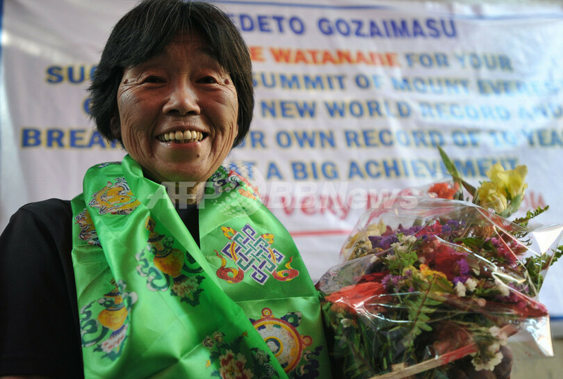 渡辺さんは10年前の2002年5月16日のエベレスト登頂成功で女性最高齢の世界記録を達成しており、今回の登頂で自らの立てた記録を更新した。(c)AFP