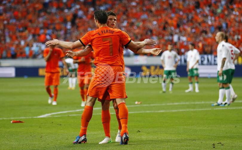 前半終了直前にロビン・ファン・ペルシー(Robin Van Persie)が先制点を挙げたオランダは、後半開始直後と同ロスタイムにブルガリアに得点を許した。(c)AFP