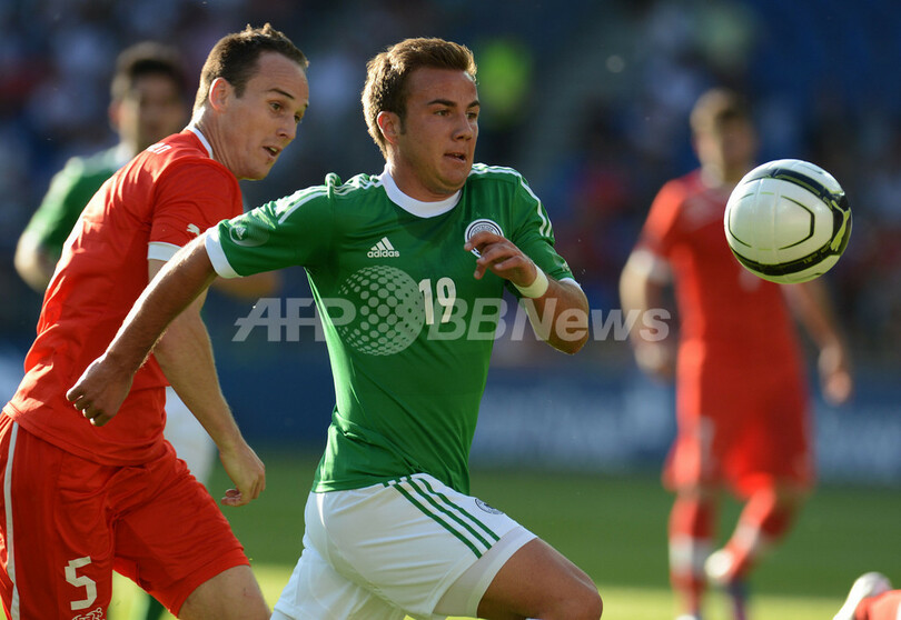 ボールを追うドイツのマリオ・ゲッツェ(Mario Goetze、2012年5月26日撮影)。(c)AFP/PATRIK STOLLARZ