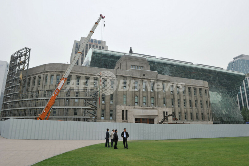【5月28日 AFP】韓国の首都ソウル(Seoul)で24日、総工費2億5600万ドル(約204億円)で建設中の新市庁舎の外観が初めて全貌を現した。しかしガラス張りで13階建ての新庁舎が、日本統治時代の1926年に建てられた現庁舎に砕ける波のような形でせり出しているデザインが論議を呼んでいる。