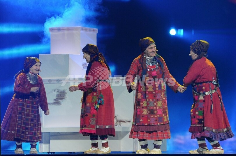 メンバー最高齢は76歳という「ブラノフスキエ・バブシュキ(Buranovskiye Babushki、ブラノボ村のおばあちゃん)」は27日、アゼルバイジャンの首都バクー(Baku)で行われた決勝でディスコ調の曲「パーティー・フォー・エブリバディ(Party for Everybody)」を英語と出身地ウドムルト(Udmurt)の言葉フィン・ウゴル(Finno-Ugric)語で披露し、観客の心をとらえた。