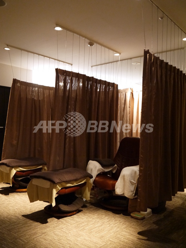 店内中央には、新作や人気ランキング上位商品のテスターを並べた巨大なテーブルとチェアを配置。来店者がより気軽に商品を試すこと ができる。スタッフも、カウンター越しでなく、来店者と隣り合って商品アドバイスを行う。