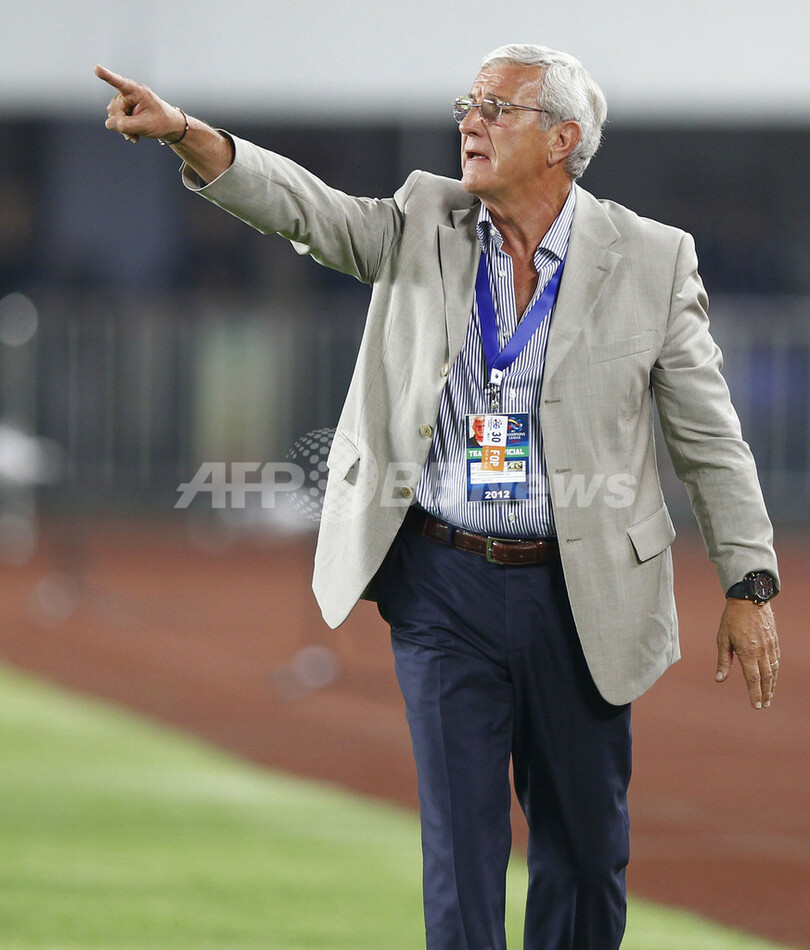 選手に指示を出す広州恒大のマルチェロ・リッピ(Marcello Lippi)監督(2012年5月30日撮影)。(c)AFP