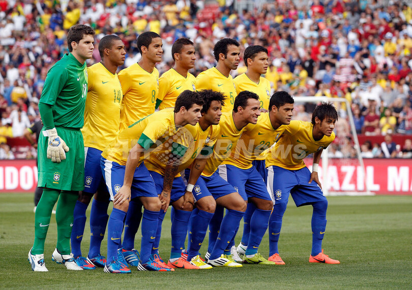 試合開始前の写真撮影に臨むブラジルの選手(2012年5月30日撮影)。(c)AFP/Getty Images/Rob Carr