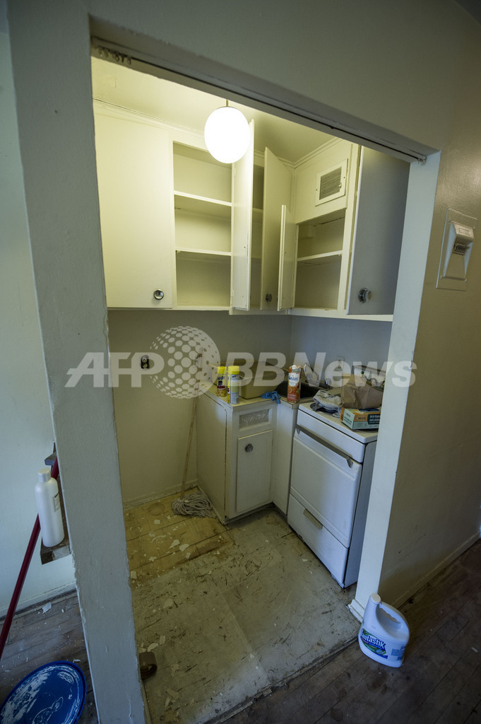 写真は、モントリオール市内にあるマグノッタ容疑者が居住していたとされる部屋の台所(2012年5月31日撮影)。(c)AFP/ ROGERIO BARBOSA