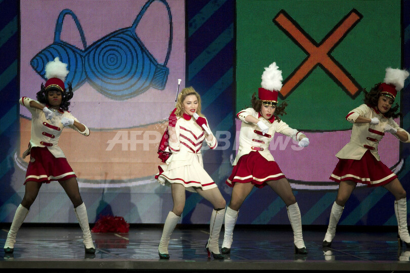 写真はラマット・ガン・スタジアムでのマドンナのステージ(2012年5月31日撮影)。(c)AFP/JACK GUEZ