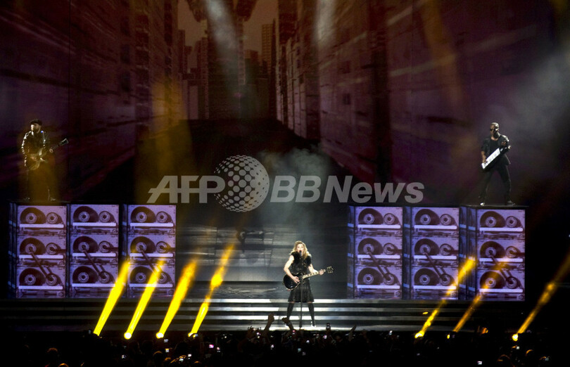 写真はラマット・ガン・スタジアムでのマドンナのステージ(2012年5月31日撮影)。(c)AFP/JACK GUEZ