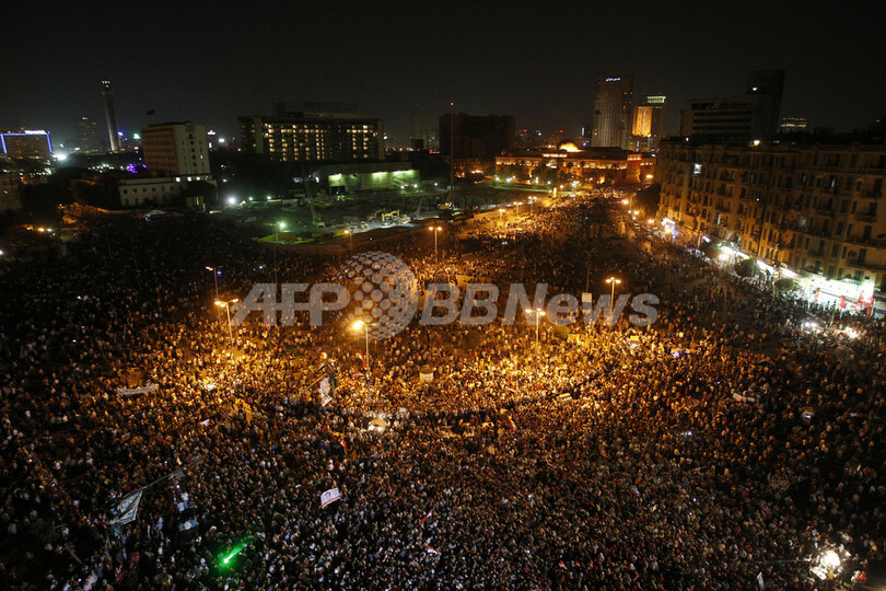 ムバラク前大統領の終身刑判決に抗議、エジプト各地でデモ