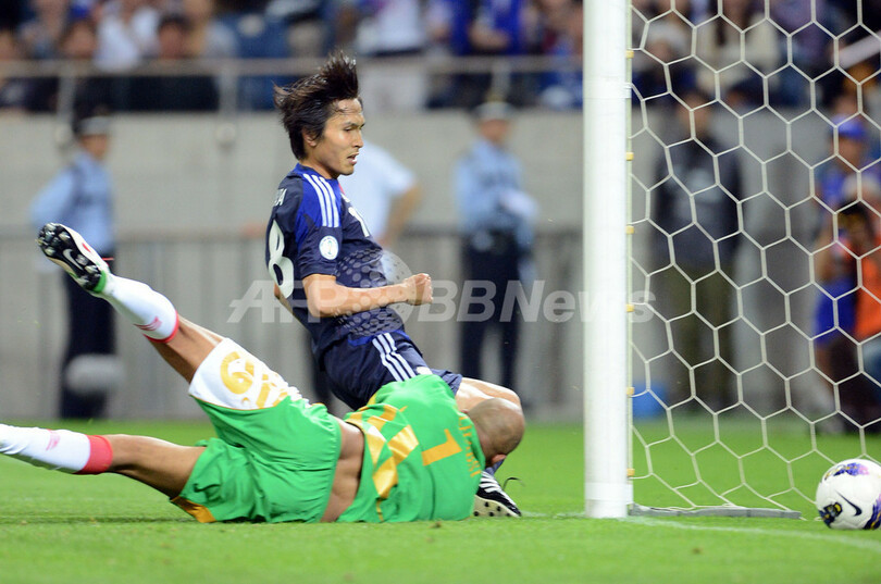 後半6分に追加点を挙げる日本の前田遼一(Ryoichi Maeda、奥、2012年6月3日撮影)。(c)AFP/TOSHIFUMI KITAMURA