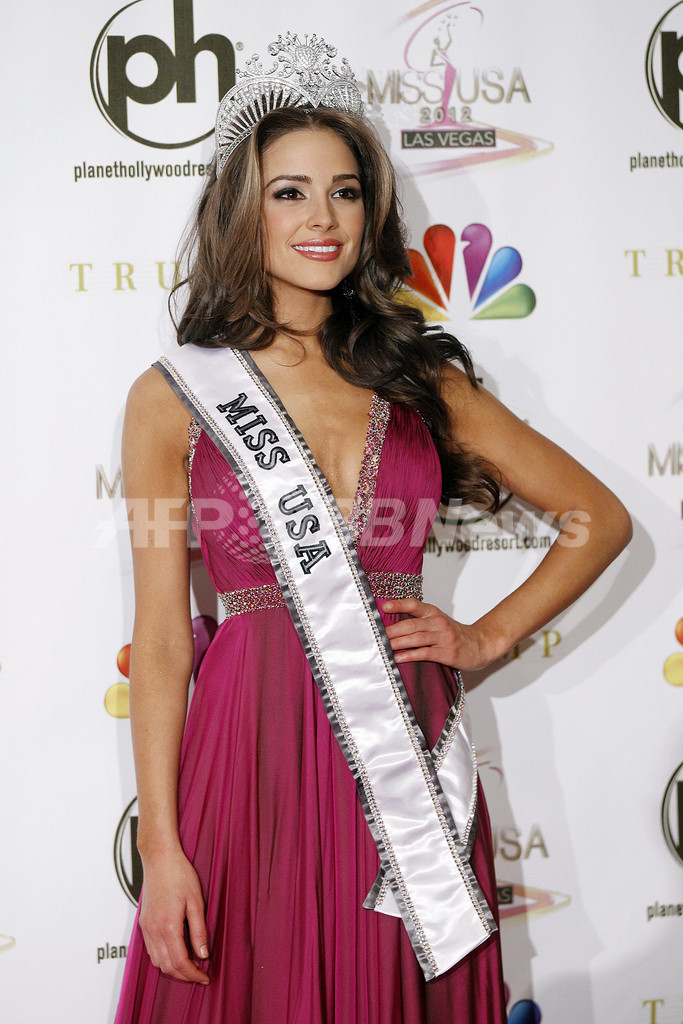 【6月5日 AFP】2012年のミスUSA(Miss USA)を決める最終選考会が3日、米ネバダ(Nevada)州ラスベガス(Las Vegas)のプラネット・ハリウッド・リゾート・アンド・カジノ(Planet Hollywood Resort & Casino)で開催され、ロードアイランド(Rhode Island)州代表のオリビア・カルポ(Olivia Culpo)さんが栄冠に輝いた。(c)AFP/Getty Images