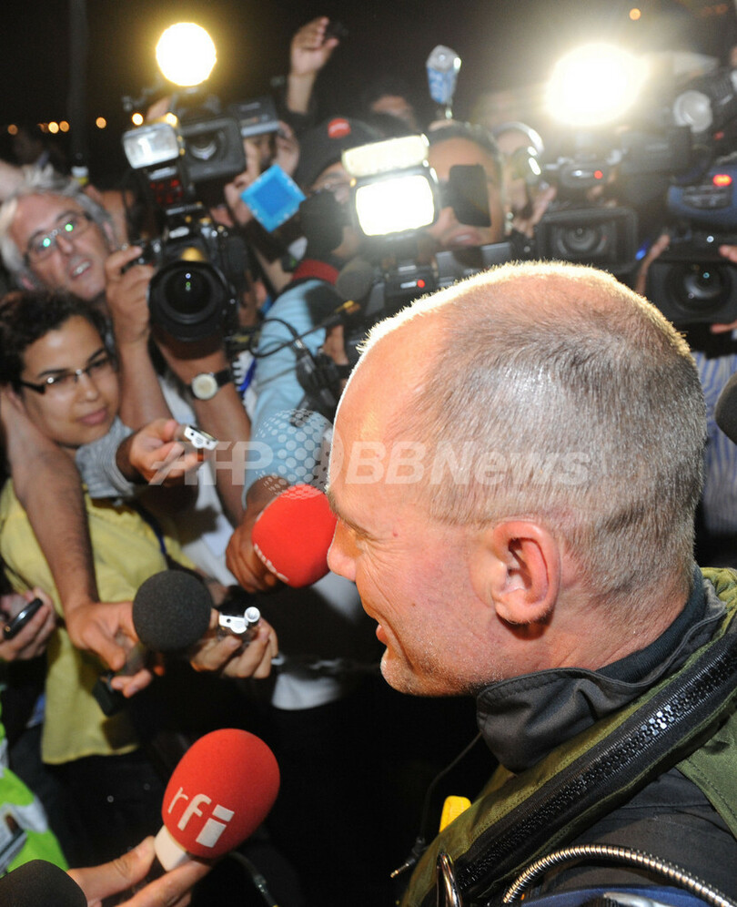 写真はサレ空港で記者団の取材に応じるピカール氏(2012年6月5日撮影)。(c)AFP/ABDELHAK SENNA