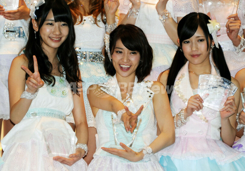 ニュース ライフ AKB48選抜総選挙、大島優子がセンター奪還 2012年6月7日 8:40 発信地:東京 [ アジア・オセアニア 東京 ] このニュースをシェア ‹ › ❮ 4/12 ❯ 人気アイドルグループAKB48の「第4回選抜総選挙」が6日、東京・日本武道館で開催され、大島優子(Yuko Oshima)が10万8837票を獲得し、1位に返り咲いた。大島は27枚目となる次のシングルでセンターポジションを務める。写真は、(左から)3位の柏木由紀(Yuki Kashiwagi)、大島、2位の渡辺麻友(Mayu Watanabe、2012年6月6日撮影)。(c)AFP/TOSHIFUMI KITAMURA 画像作成中 ! 【6月7日 AFP】人気アイドルグループAKB48の「第4回選抜総選挙」が6日、東京・日本武道館で開催され、大島優子(Yuko Oshima)が10万8837票を獲得し、1位に返り咲いた。大島は27枚目となる次のシングルでセンターポジションを務める。(c)AFP ライフ 一覧へ> メディア・報道関係・法人の方向け 写真・動画 購入のお問合せ>