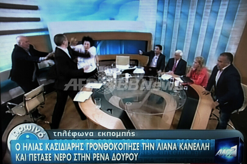ニュース 政治・経済 ギリシャ極右議員、討論番組の生放送中に暴行 2012年6月8日 11:21 発信地:アテネ/ギリシャ [ ヨーロッパ ギリシャ ] このニュースをシェア ‹ › ❮ 4/6 ❯ ギリシャでテレビの政治討論番組中に左派系政党の女性議員に襲いかかった極右政党「黄金の夜明け」のイリアス・カシディアリス(Ilias Kasidiaris)議員(左から2人目、2012年6月7日撮影)。」(c)AFP/ANTENA 画像作成中 ! 【6月8日 AFP】ギリシャで7日、テレビの政治討論番組の生放送中に極右政党「黄金の夜明け」の男性議員が、出演者の左派政党の女性議員2人に襲いかかり、暴行を加える騒ぎがあった。検察は同日、この男性議員に逮捕状を出した。(c)AFP 政治・経済 一覧へ> メディア・報道関係・法人の方向け 写真・動画 購入のお問合せ>