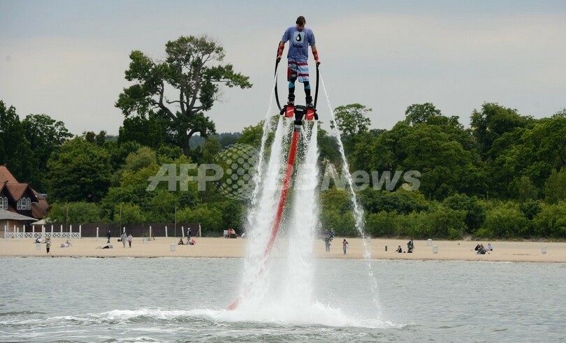水の力で空へ飛ぶ「フライボード」、ポーランド