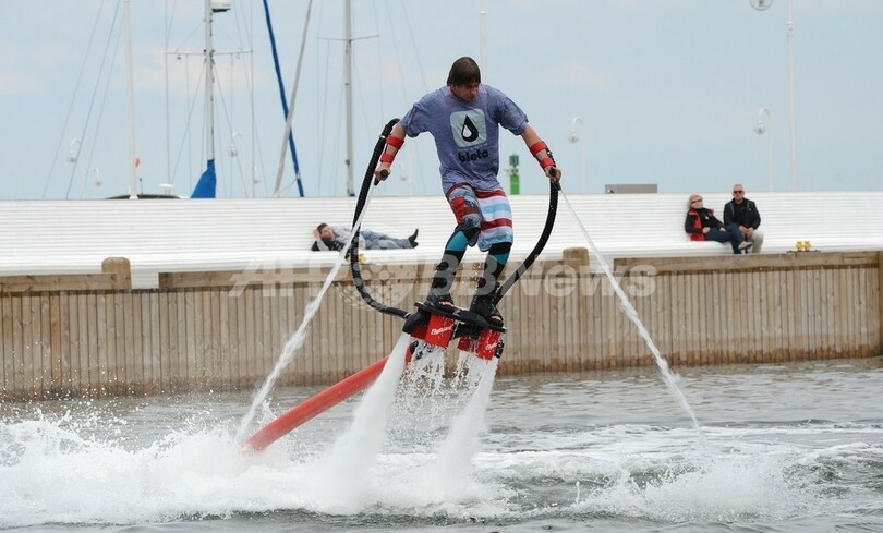 水の力で空へ飛ぶ「フライボード」、ポーランド