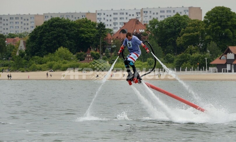 水の力で空へ飛ぶ「フライボード」、ポーランド