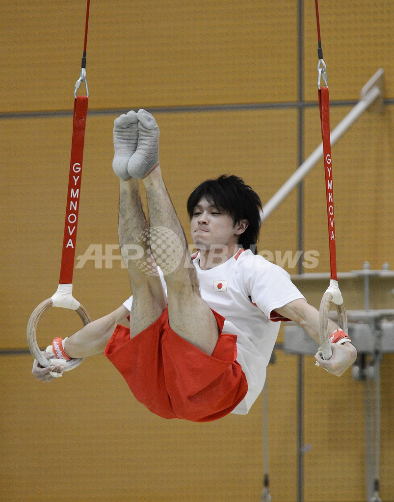 内村は「4年前は周囲の選手についていったが、今回は自分が一番最初に体育館に入って練習して皆を引っ張っていく感じ」と語った。(c)AFP/Shigemi Sato