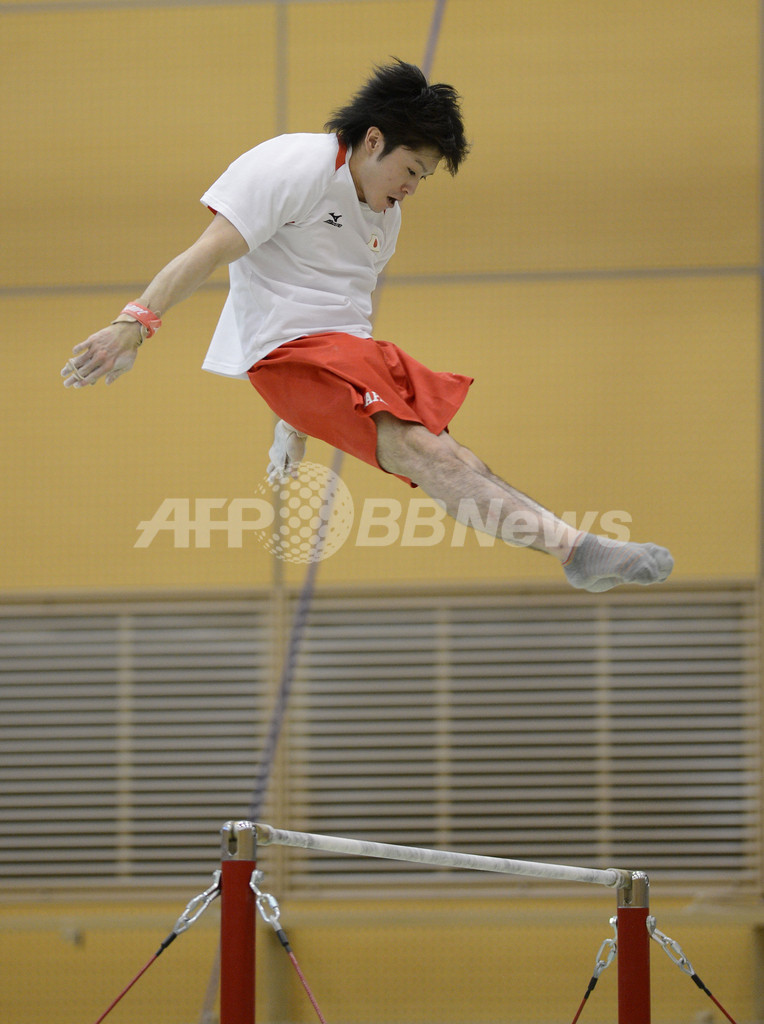 内村は「4年前は周囲の選手についていったが、今回は自分が一番最初に体育館に入って練習して皆を引っ張っていく感じ」と語った。(c)AFP/Shigemi Sato