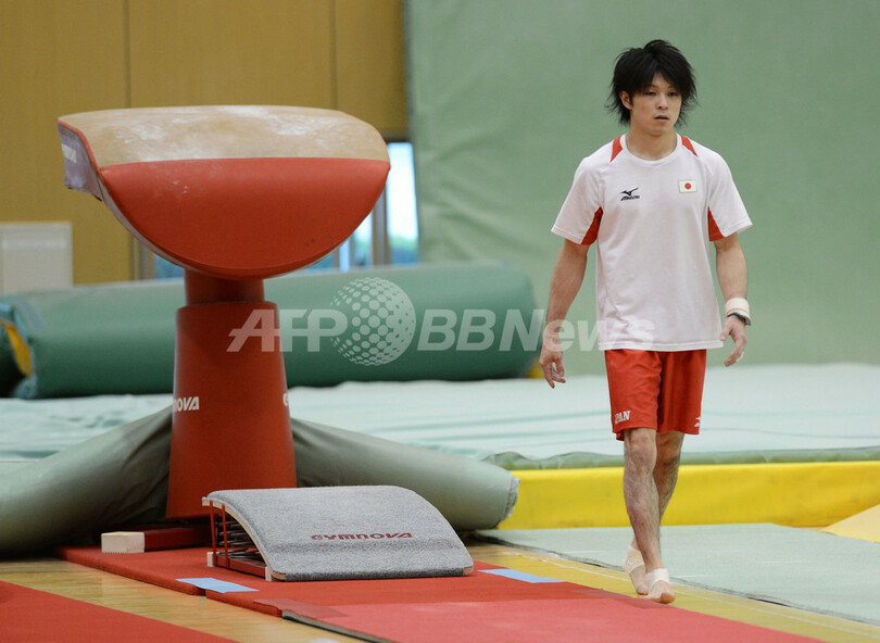 内村は「4年前は周囲の選手についていったが、今回は自分が一番最初に体育館に入って練習して皆を引っ張っていく感じ」と語った。(c)AFP/Shigemi Sato