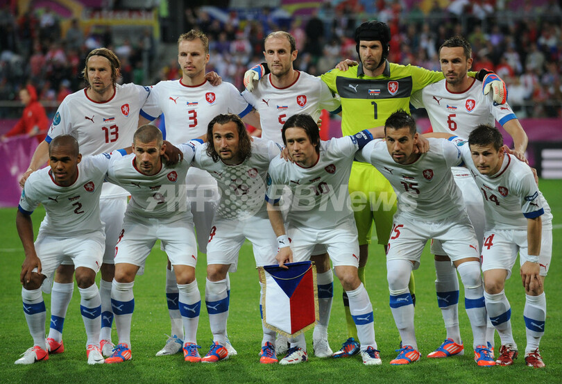 試合前の写真撮影に臨むチェコの選手(2012年6月8日撮影)。(c)AFP/DANIEL MIHAILESCU
