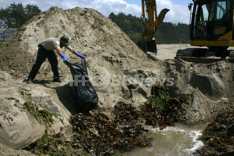 米国およびカナダの西海岸には最近になって、東日本大震災の津波によって流されたがれきが漂着し始めている。専門家らは今後数か月間続くと予想している。(c)AFP