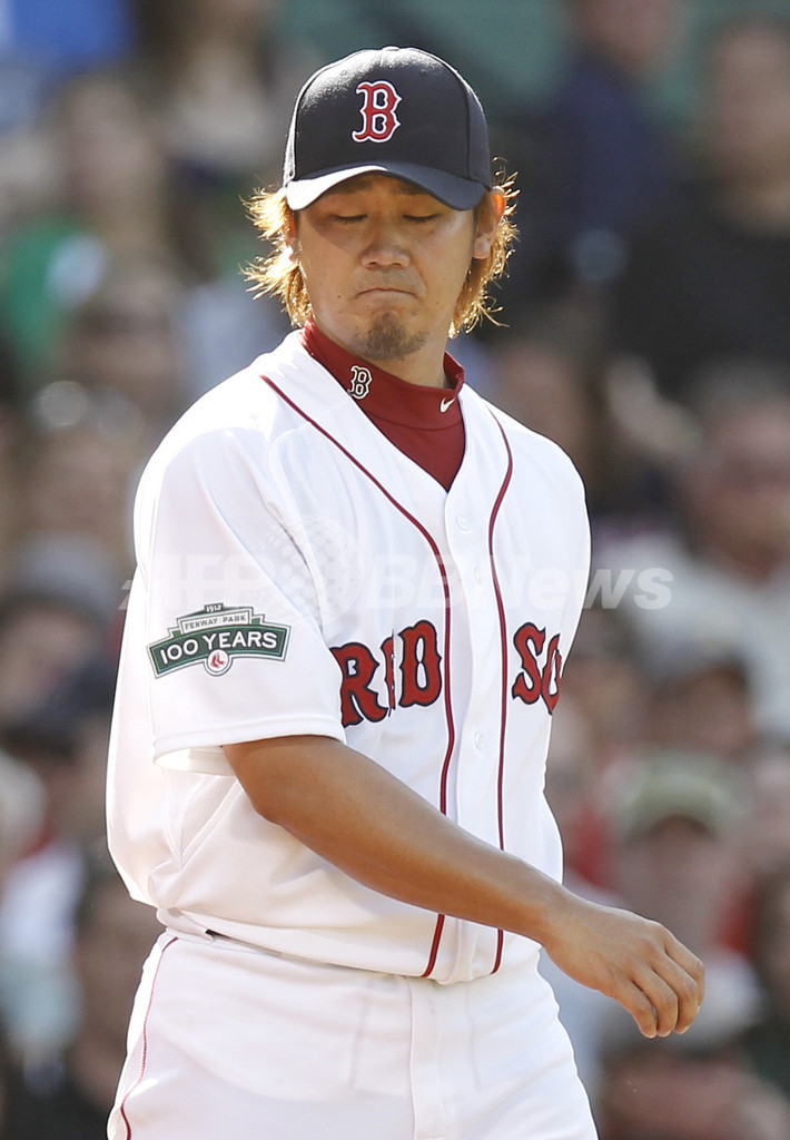 適時打を許し落胆するボストン・レッドソックスの松坂大輔(2012年6月9日撮影)。(c)AFP/Getty Images/Winslow Townson