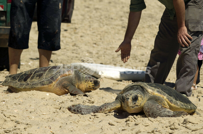 ニュース ライフ 陸で保護されたウミガメ、地中海に帰る イスラエル 2012年6月10日 18:46 発信地:テルアビブ/イスラエル [ 中東・北アフリカ イスラエル ] このニュースをシェア ‹ › ❮ 5/5 ❯ イスラエルのパルマヒム(Palmachim)で、地中海に戻されたウミガメ2匹(2012年6月7日撮影)。(c)AFP/JACK GUEZ 画像作成中 ! 【6月10日 AFP】イスラエルのテルアビブ(Tel Aviv)南方沿岸のパルマヒム(Palmachim)で7日、陸地で保護されていたウミガメが、イスラエル・ウミガメ救助センターによって地中海に戻された。 このウミガメは路上にいるところを発見され、キブツ・パルマヒムにある同センターに搬送されていた。(c)AFP ライフ 一覧へ> メディア・報道関係・法人の方向け 写真・動画 購入のお問合せ>