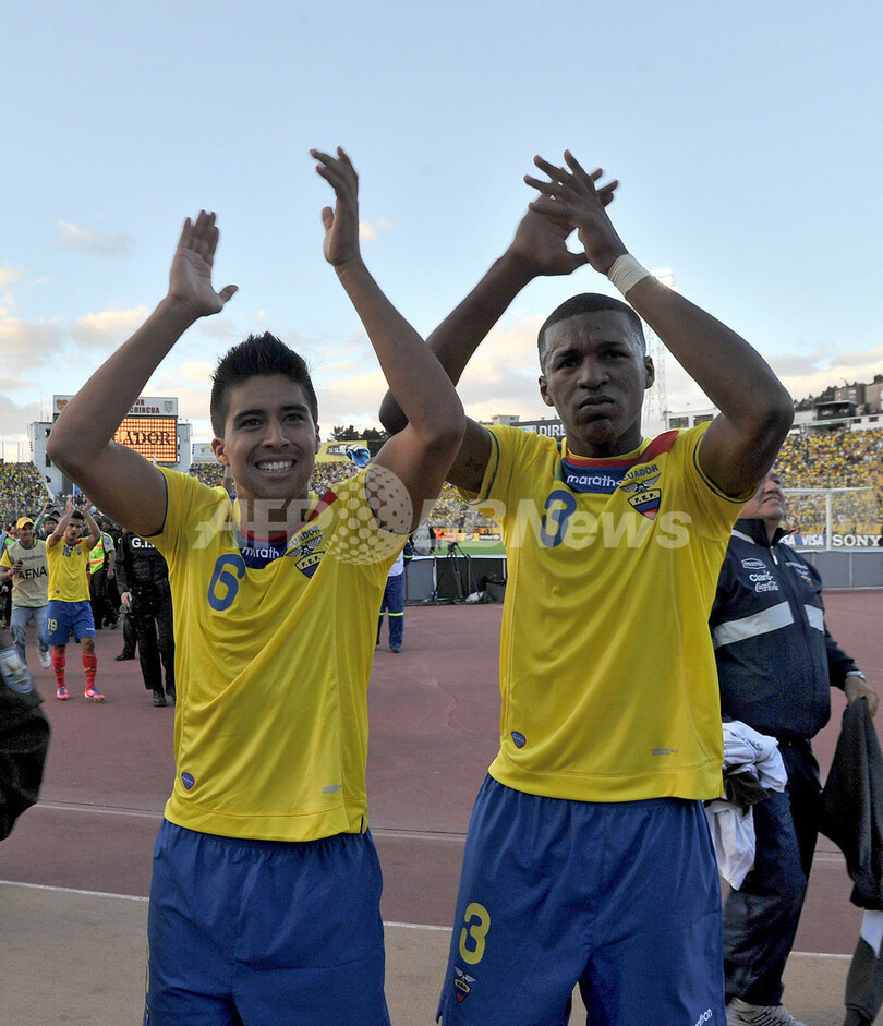 スポーツ サッカー ウルグアイとエクアドルが勝利、W杯南米予選 2012年6月11日 15:46 発信地:モンテビデオ/ウルグアイ [ 中南米 ウルグアイ ] このニュースをシェア ‹ › ❮ 3/10 ❯ 2014年サッカーW杯ブラジル大会(2014 World Cup)の南米予選は10日、各地で第6節の試合が行われ、エクアドルは1-0でコロンビアに勝利した。勝利に歓喜するエクアドルのクリスティアン・ノボア(Cristian Noboa、左)とフリクソン・エラソ(Fricson Erazo、2012年6月10日撮影)。(c)AFP/RODRIGO BUENDIA 画像作成中 ! 【6月11日 AFP】2014年サッカーW杯ブラジル大会(2014 World Cup)の南米予選は10日、各地で第6節の試合が行われ、ウルグアイとエクアドルが勝利した。(c)AFP サッカー 一覧へ> メディア・報道関係・法人の方向け 写真・動画 購入のお問合せ>