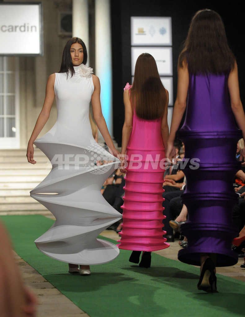 会場では、仏ブランド「ピエール・カルダン(Pierre Cardin)」がオートクチュール・ファッションショーを披露した。(c)AFP