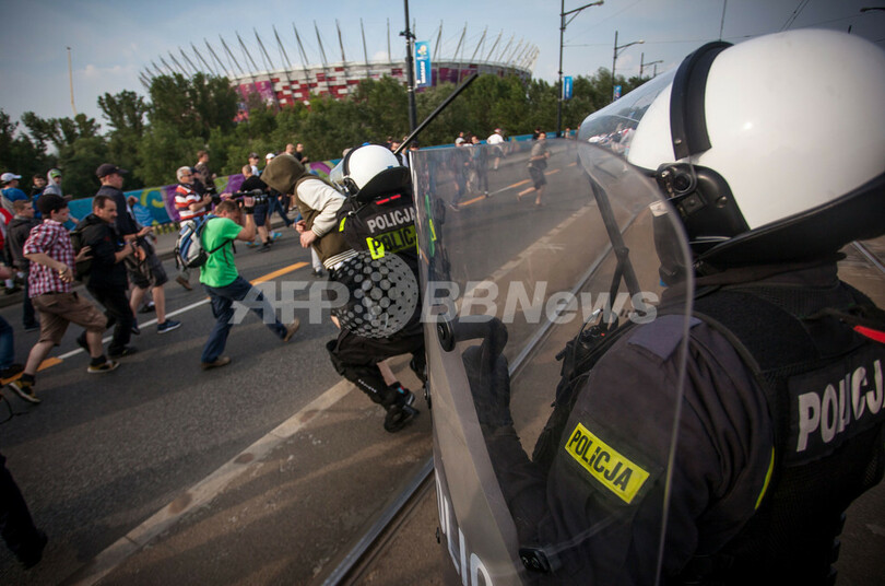 ポーランド対ロシア戦で両国のファンが衝突、ワルシャワ