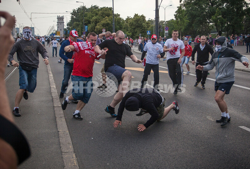 ポーランド対ロシア戦で両国のファンが衝突、ワルシャワ