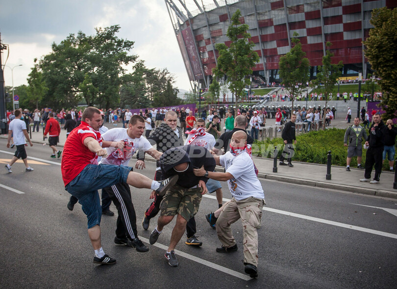ポーランド対ロシア戦で両国のファンが衝突、ワルシャワ