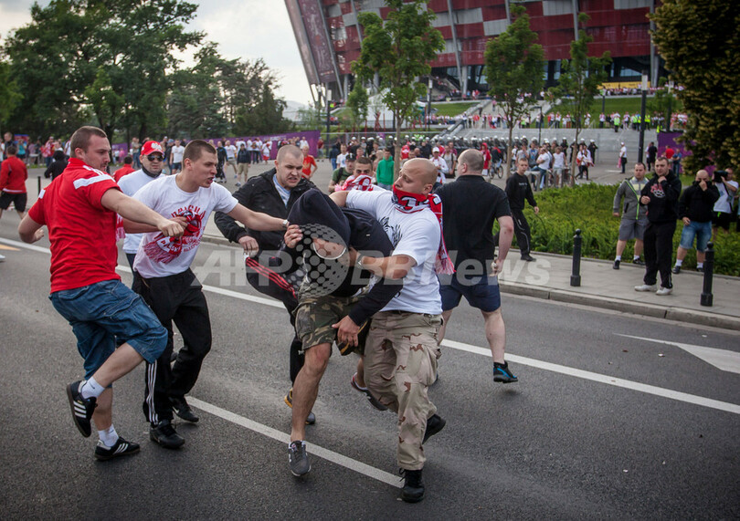 ポーランド対ロシア戦で両国のファンが衝突、ワルシャワ