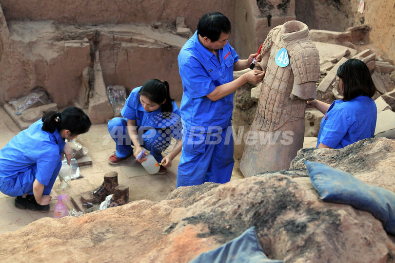 博物館の申茂盛(Shen Maosheng)考古学局副局長はAFPの取材に対し「今回最も重要な点は、発見された遺物の保存状態がよく、また彩色されていたことだ」と述べた。また調査チームはさらに11体の兵馬俑があることを確認しているが、まだ発掘はしていないという。(c)AFP